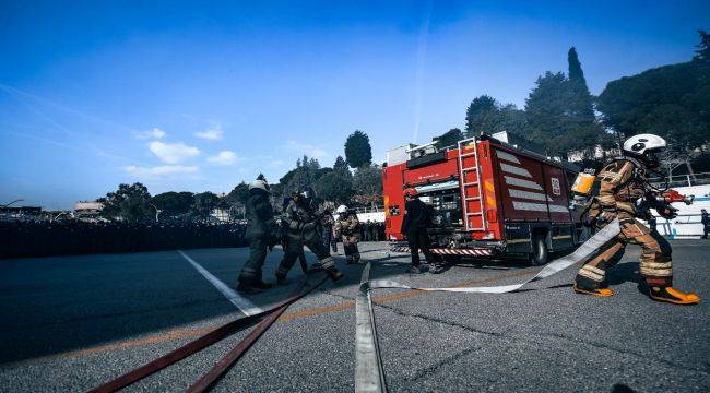 İzmir Büyükşehir Belediyesi İtfaiye Dairesi Başkanlığı ekipleri, Buca’daki Rüştü Ünsal Polis Meslek Yüksekokulu’nda yangın tatbikatı düzenledi.